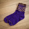 The pattern is written for 2 sizes and features a heel flap with french turn and ribbon toe shaping.