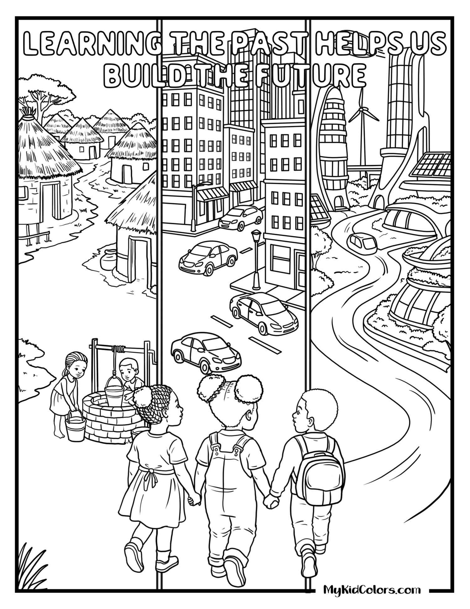 Free Hand-Drawn Inclusive Then & Now Coloring Pages (Past vs Present Learning for Kids)