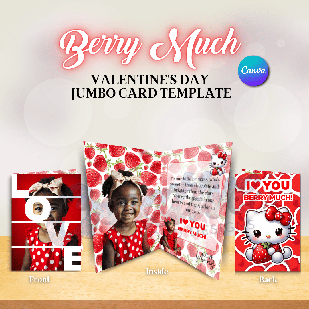 "Berry Much" Valentine's Day Jumbo Card Canva Template