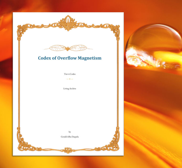 This T4 Codex explores the principle of Overflow Magnetism, where abundance flows from resonance, contrasting scarcity and overflow fields. It emphasizes that abundance is a byproduct of alignment rather than competition. Practices for cultivating this magnetism include resonant giving and daily attunement, ultimately fostering a thriving connection with Source and the universe.