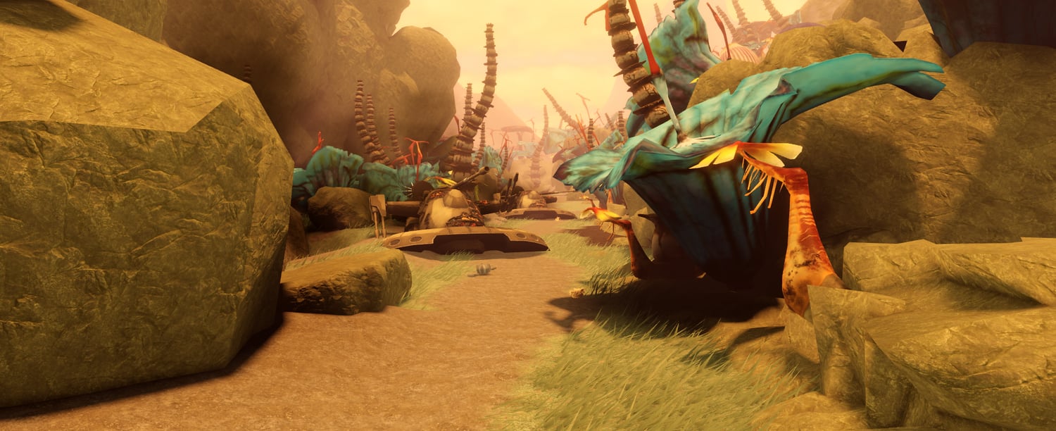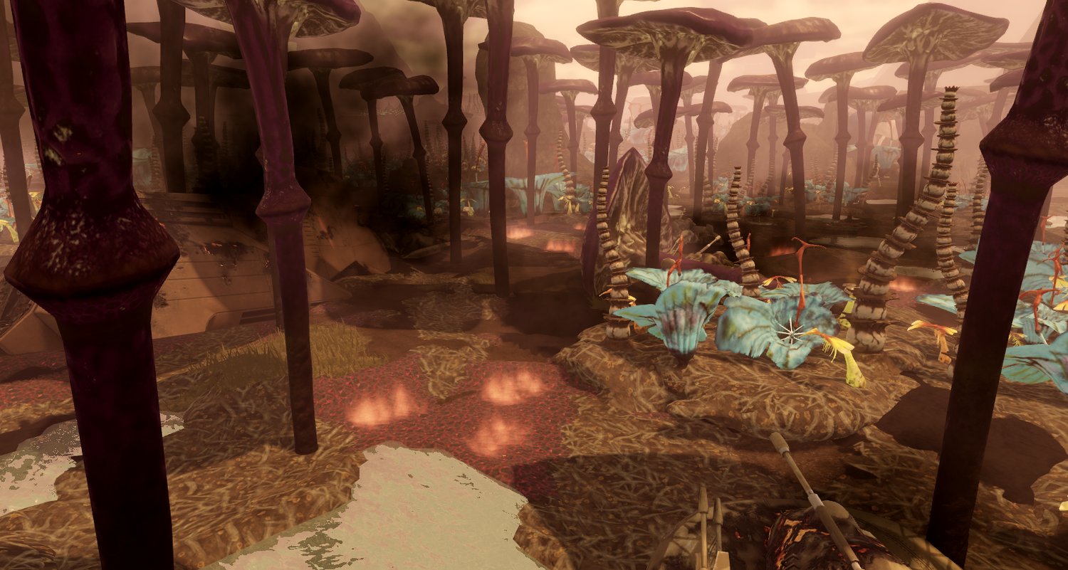 - Massive, detailed terrain with dense foliage and alien plant life