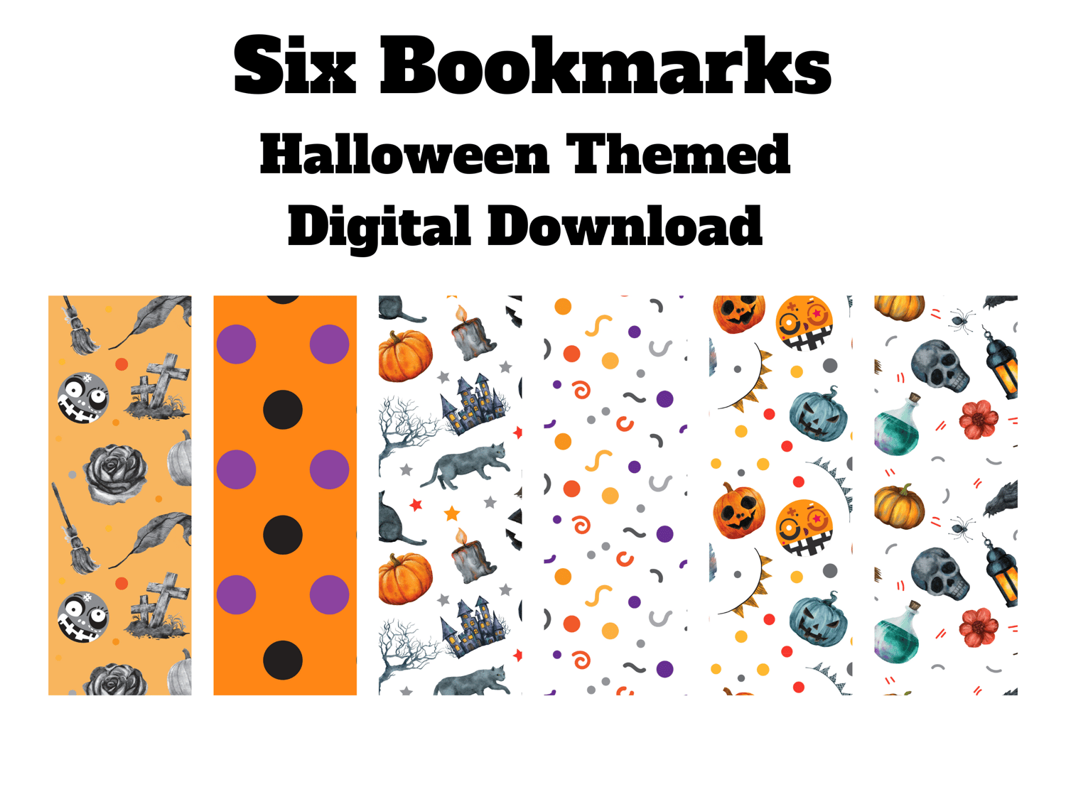 Set of 6 Halloween Mixed Prints Instant Download Bookmarks