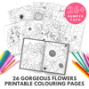 1 printable colouring PDF book with 26 beautifully detailed pages for you to print and colour at home.