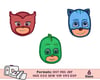 PJ mask Face APPLIQUE DESIGN machine embroidery catboy connor, owlette amaya, greg gekko superhero logo