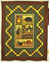 There is only one block in this quilt, made up of half=square triangles and squares. The center can be a panel or large scale print, or use it as a base for applique. Stop at the third border for a toddler quilt or wallhanging. Add more borders to make a lap or twin size quilt. Sizes: 44” x 58”, 52” x 66”, 72” x 86”