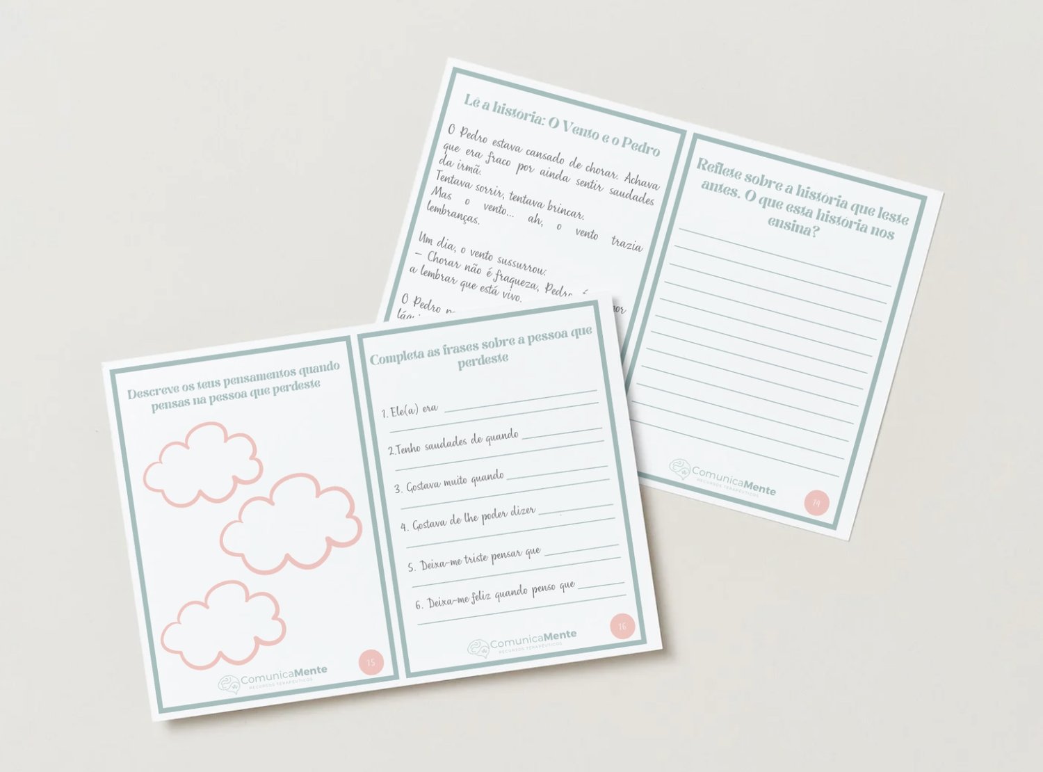 Um recurso terapêutico em formato de diário, composto por 64 páginas com exercícios estruturados, desenvolvido para apoiar crianças e adolescentes dos 11 aos 16 anos no processo de luto associado à perda de um avô ou avó. O material é indicado para uso em contexto clínico, permitindo ao profissional guiar o jovem na exploração das emoções, recordações e estratégias de enfrentamento.