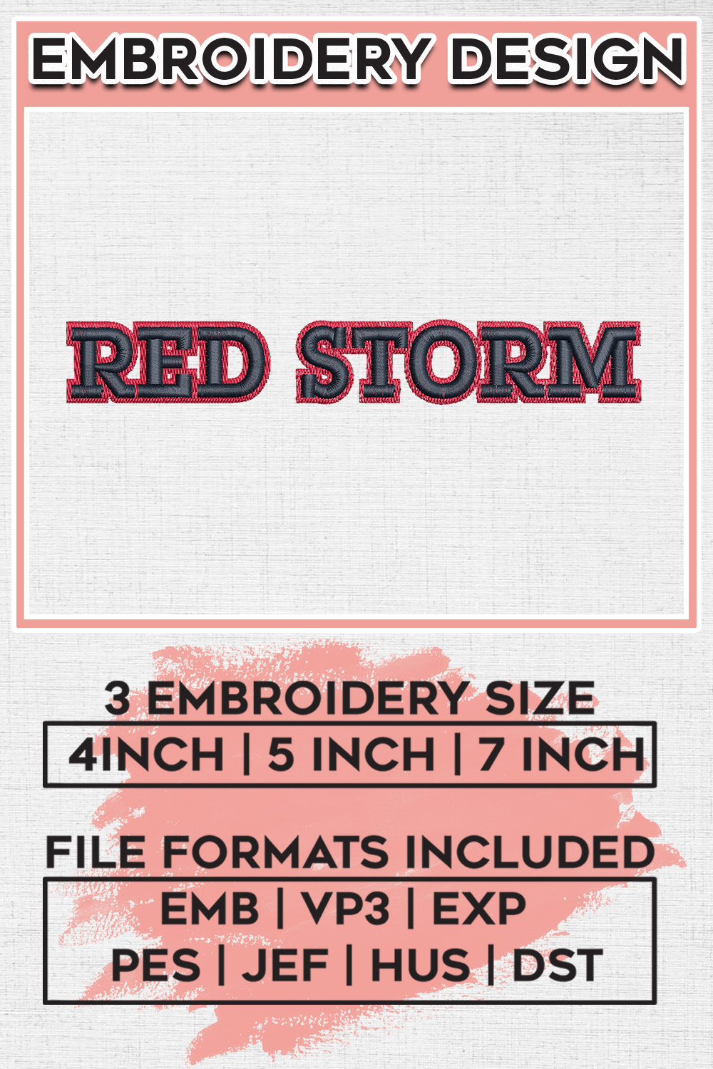 Red Storm NCAA College Football Team Wordmark Logo Embroidery Designs, NCAA St. Johns Red Storm Machine Embroidery Files, NCAA Logo embroidery designs, NCAA St. Johns Logo, Digital Download