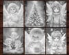 32 Christmas Critters Cute Animal Coloring Page Book, Adults + kids Instant Download Grayscale Coloring Page, Printable PDF Squirrel, Fox