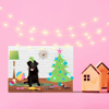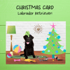 This is an adorable Christmas Holiday card that features a fancy Black Labrador Retriever enjoying his presents!
