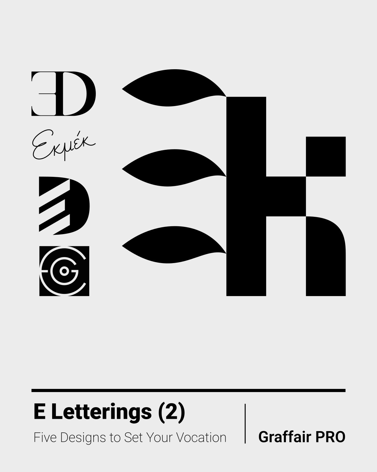 E Letterings (2): The second set of "E" logo/letterings includes five original designs. These letterings are part of the "800 SVG Letterings" bundle, which also contains 800 other exceptional designs.