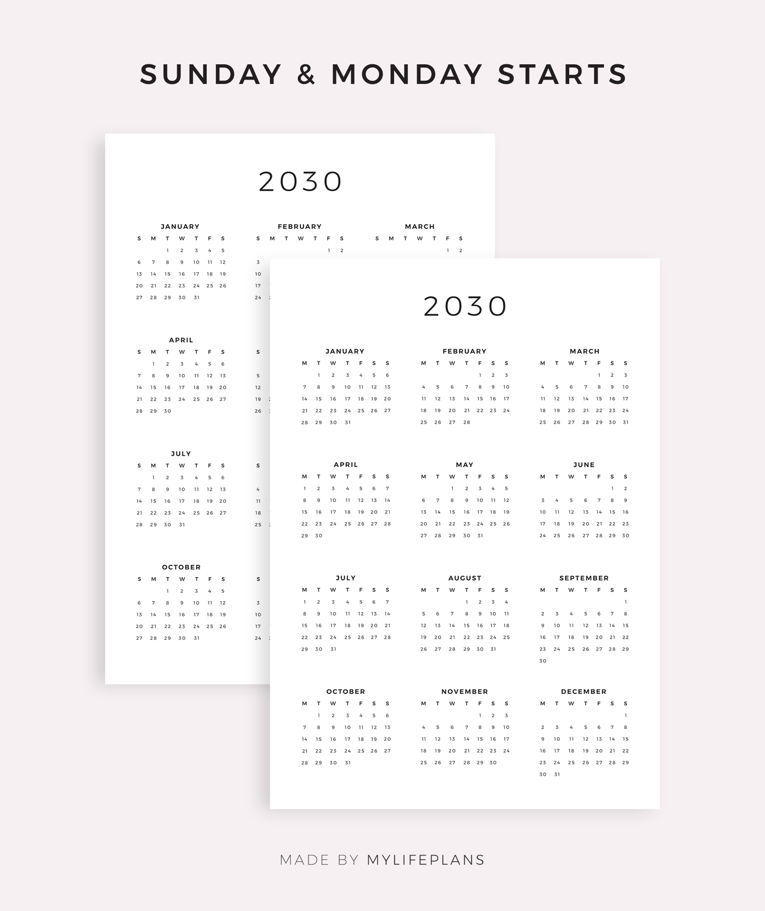 This is a printable 2030 calendar and important dates page — just download, print, and start using it right away.