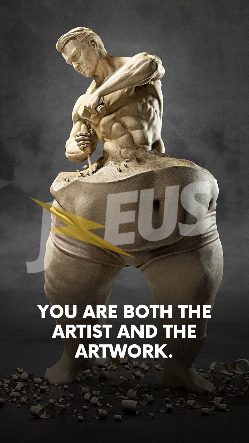 Transform your phone into a daily reminder of discipline and self-mastery. This wallpaper features a powerful image of a man sculpting his own body—symbolizing that you are both the creator and the masterpiece.