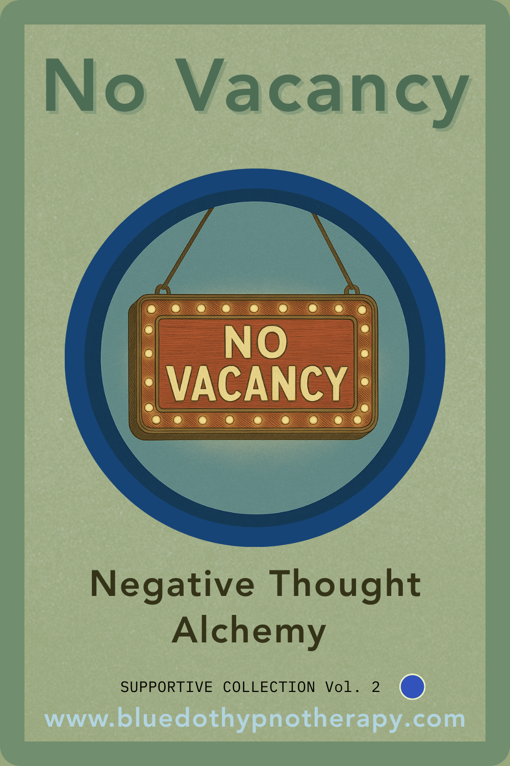 and install a simple but powerful post-hypnotic cue that you can call on in daily life, so that whenever an unwanted thought arises, you can simply say No Vacancy, and feel your boundaries hold. You will emerge feeling calm, clear, and quietly in command of your own mind.