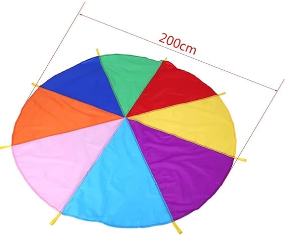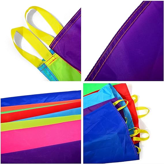 - O para-quedas arco-íris Dimoxii é especialmente atraente para as crianças, pois é projetado com acabamento fino e sem rebarbas, para que não prejudique as suas mãos.
