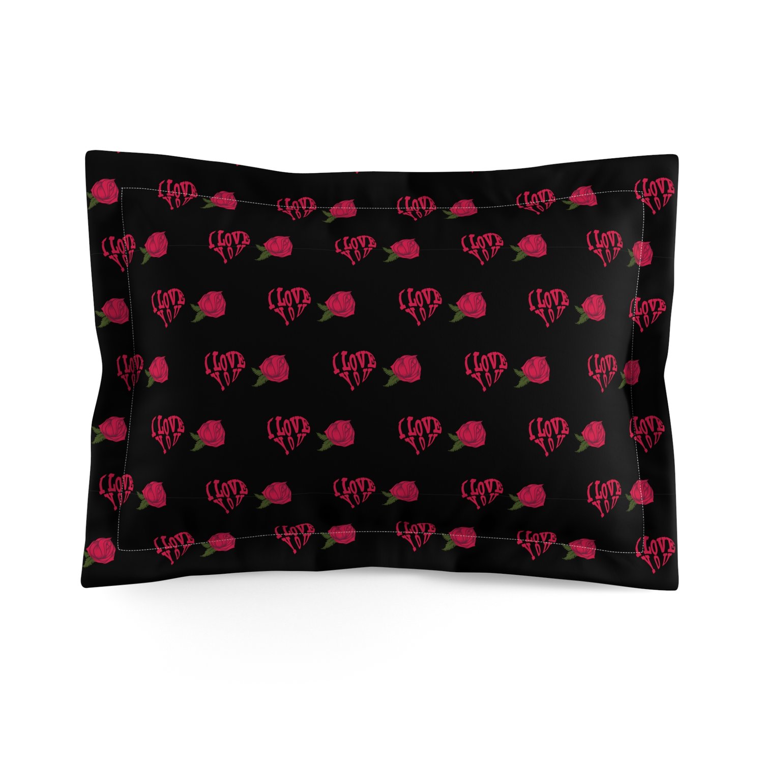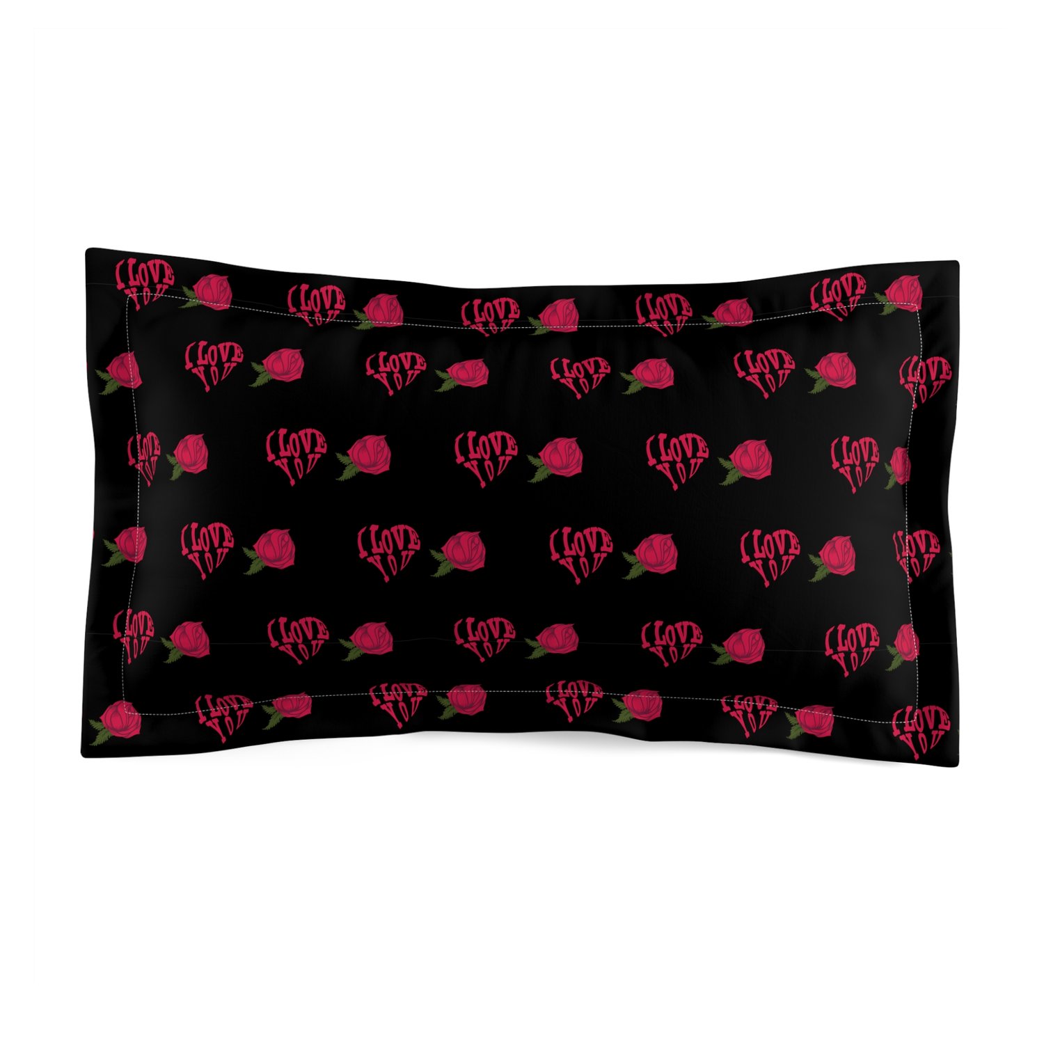 Microfiber Pillow Sham, Black, Pink Love