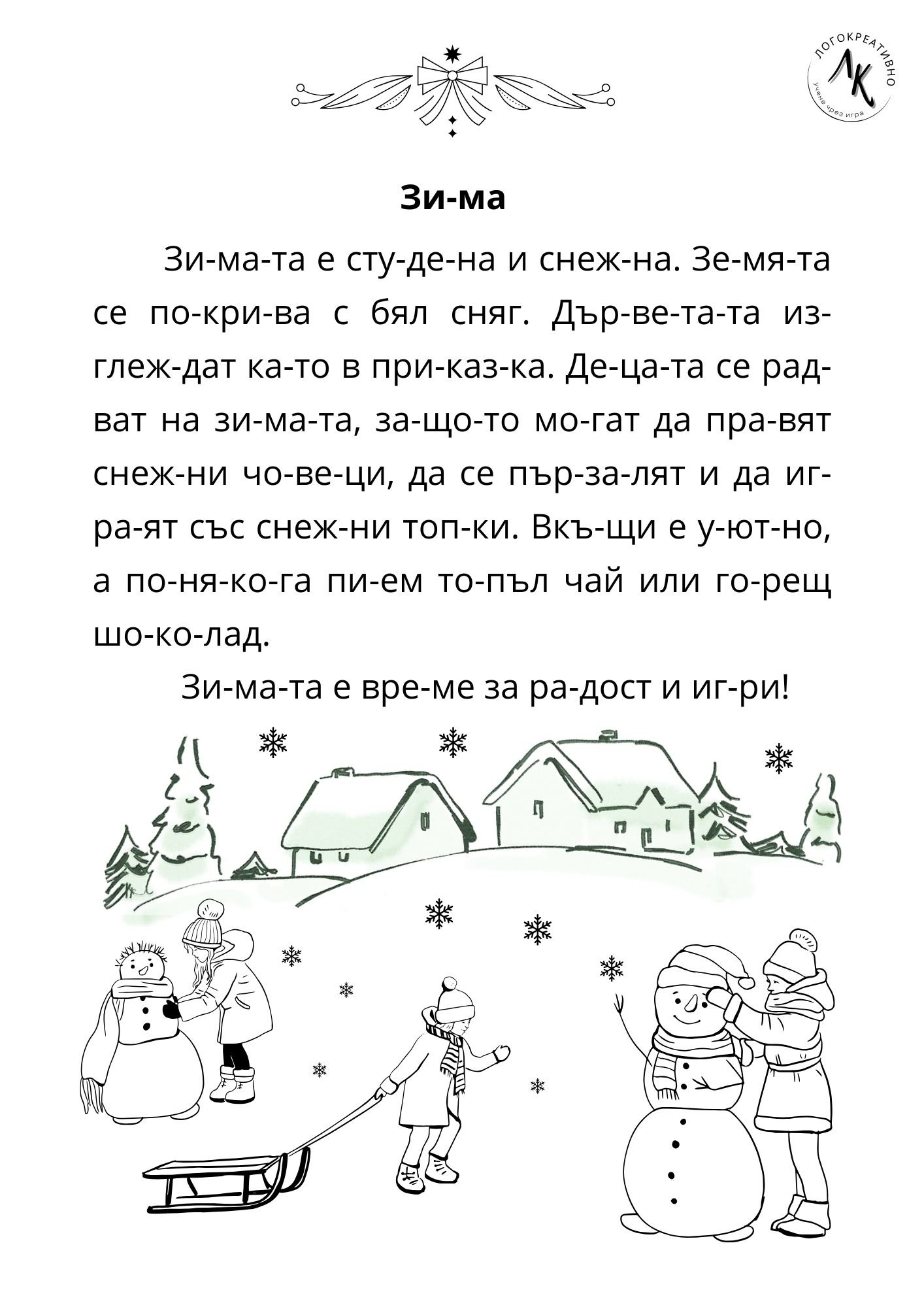 🔹 Кратки и разбираеми текстове на зимна тематика