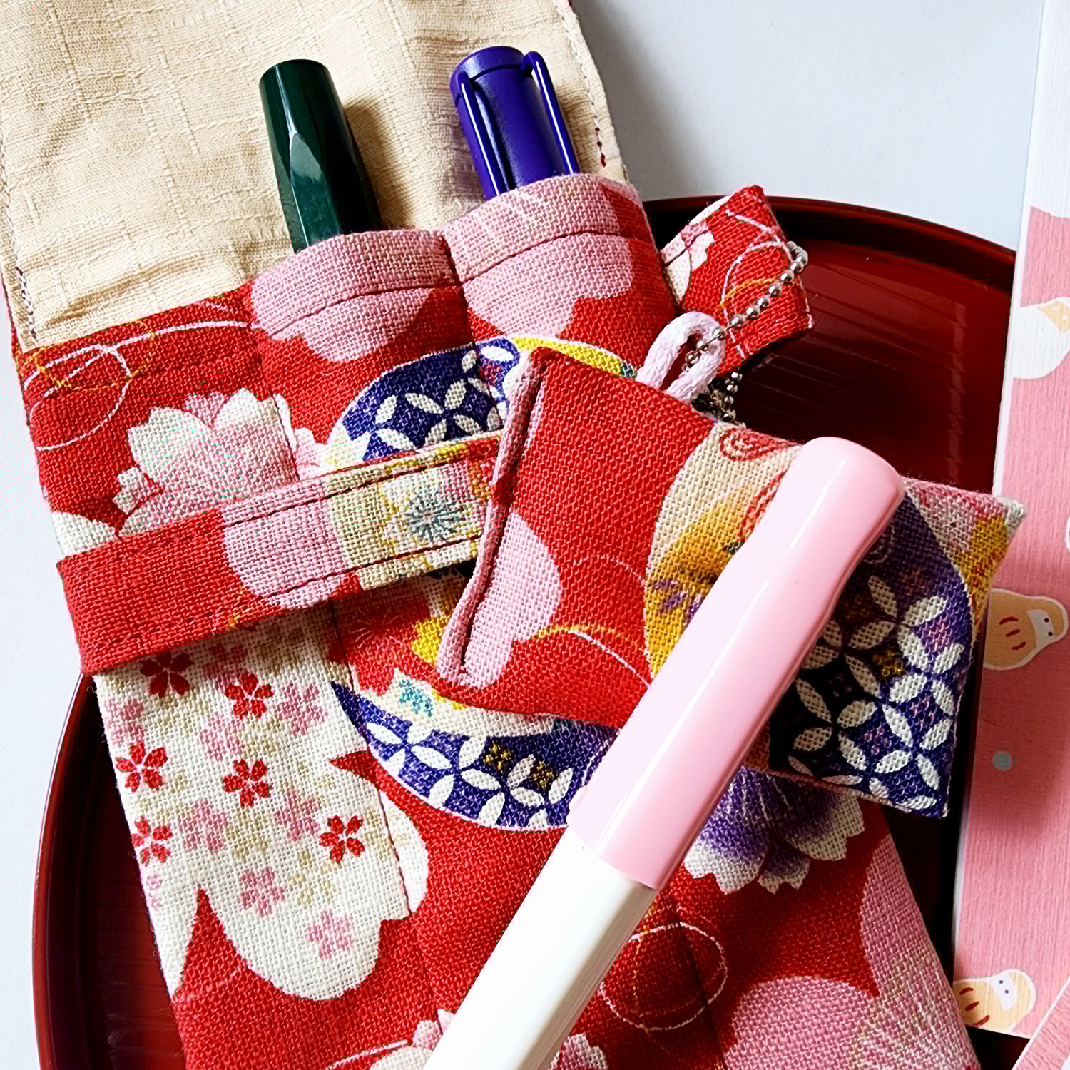 [Japan Red Floral Triple Fountain Pen Case]