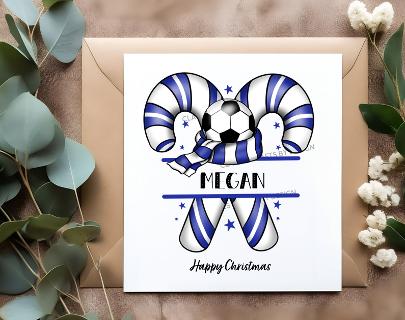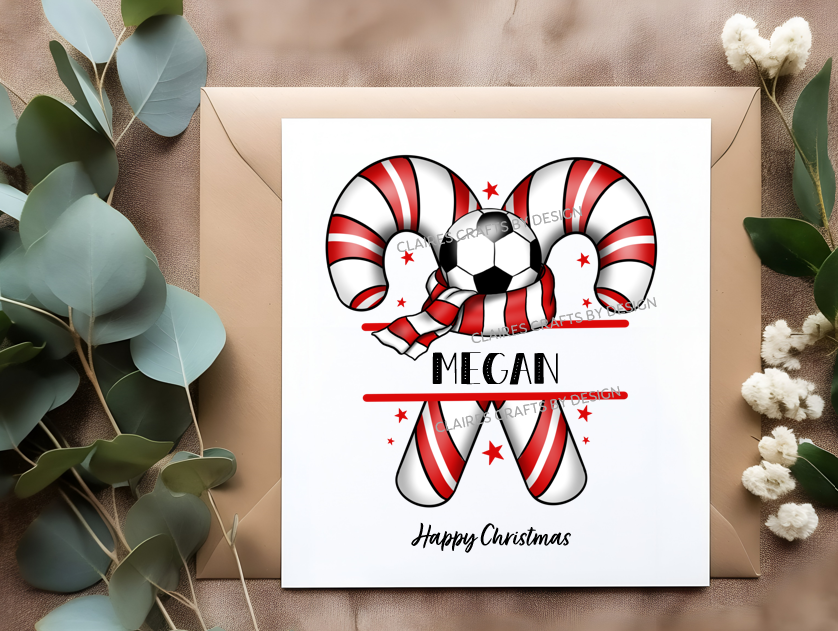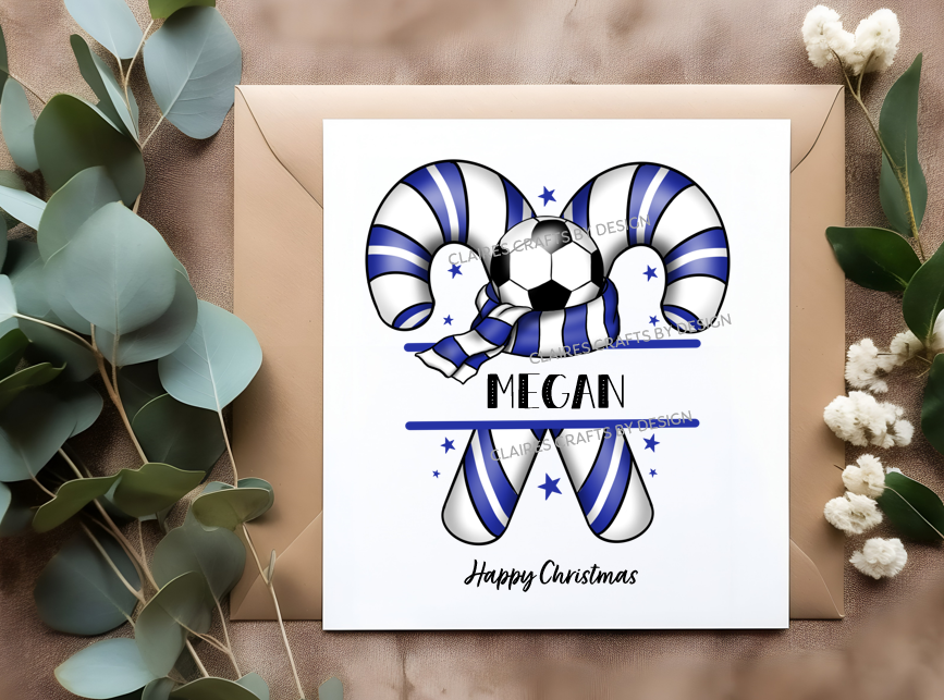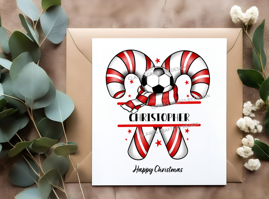 These football candy cane cards are made just for you. They can be personalised for any occasion, the unique designs are designed upon order and therefore bespoke.