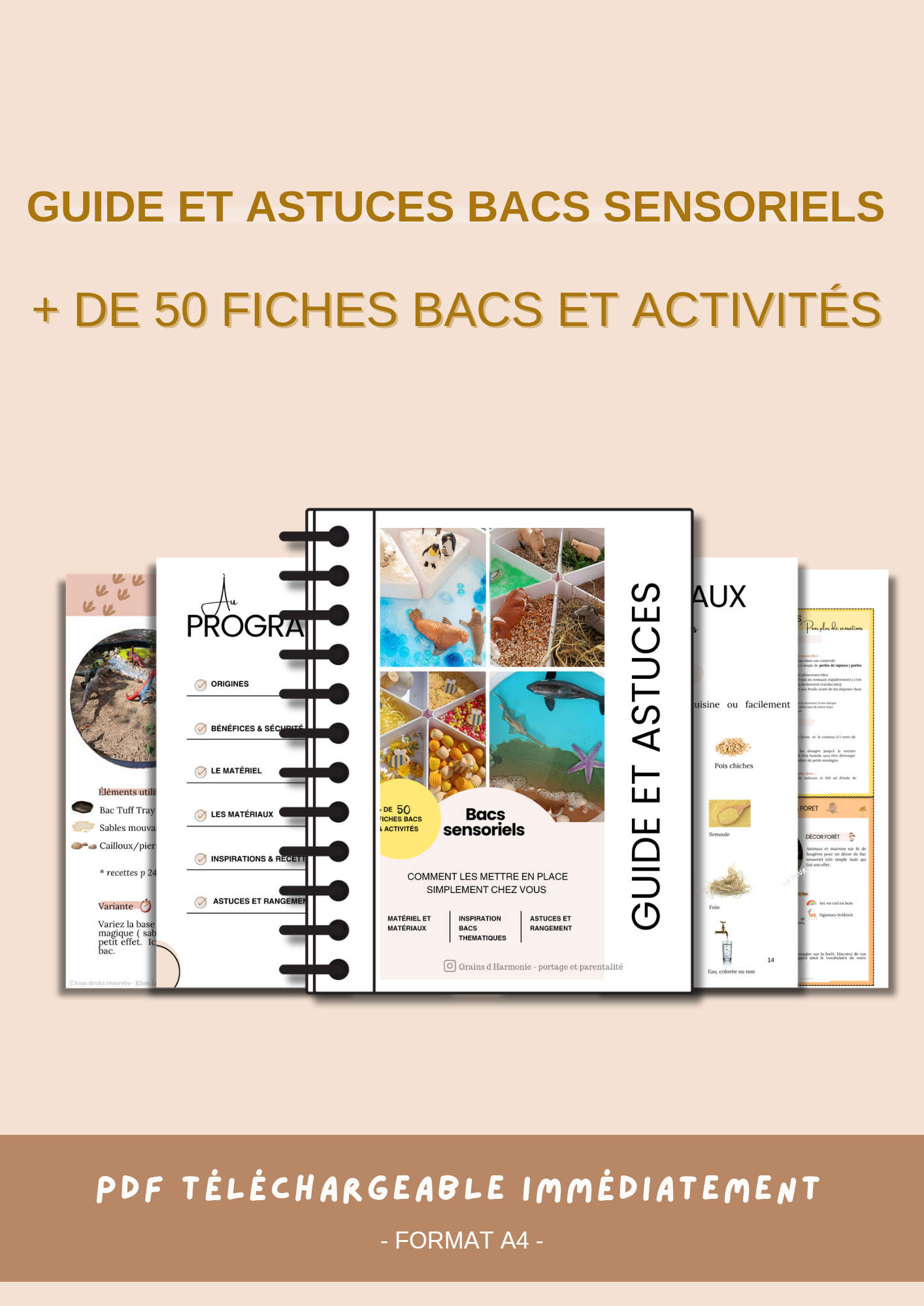 🍃Des fiches d'inspiration par thèmes avec les éléments utilisés, les recettes pour plus de sensations. Et pour chaque bac, une proposition d activité ou d adaptation.