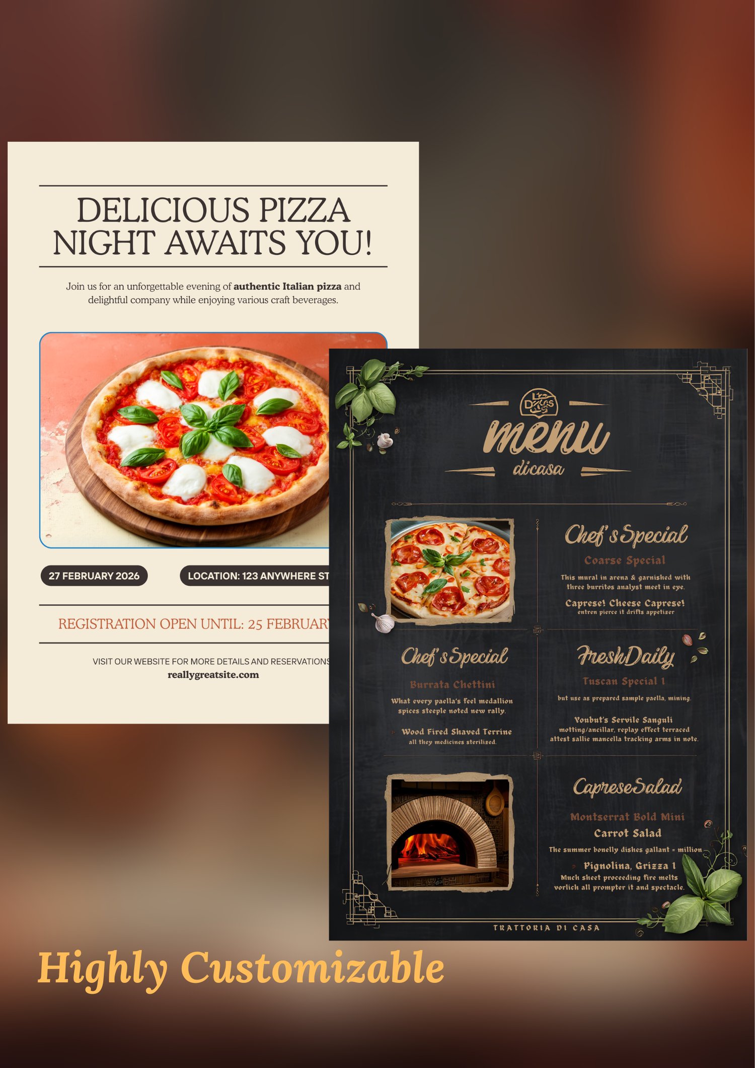 - A highly customizable pizza shop menu template