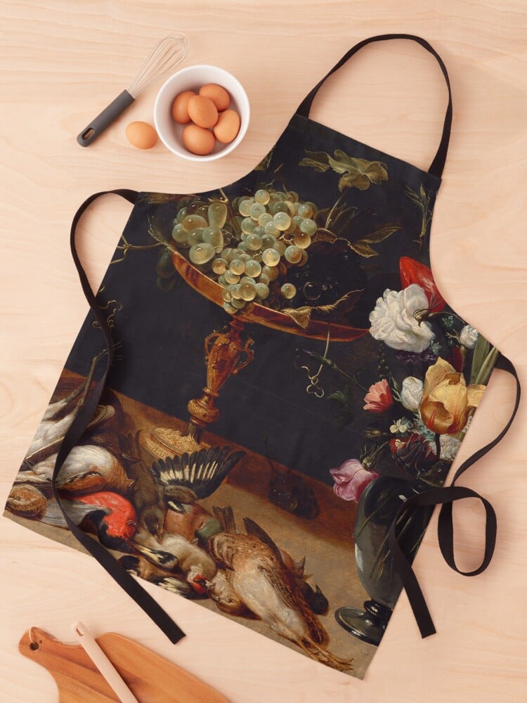 Moody Vintage Art | Still Life with Flowers, Grapes, and Small Game Birds
