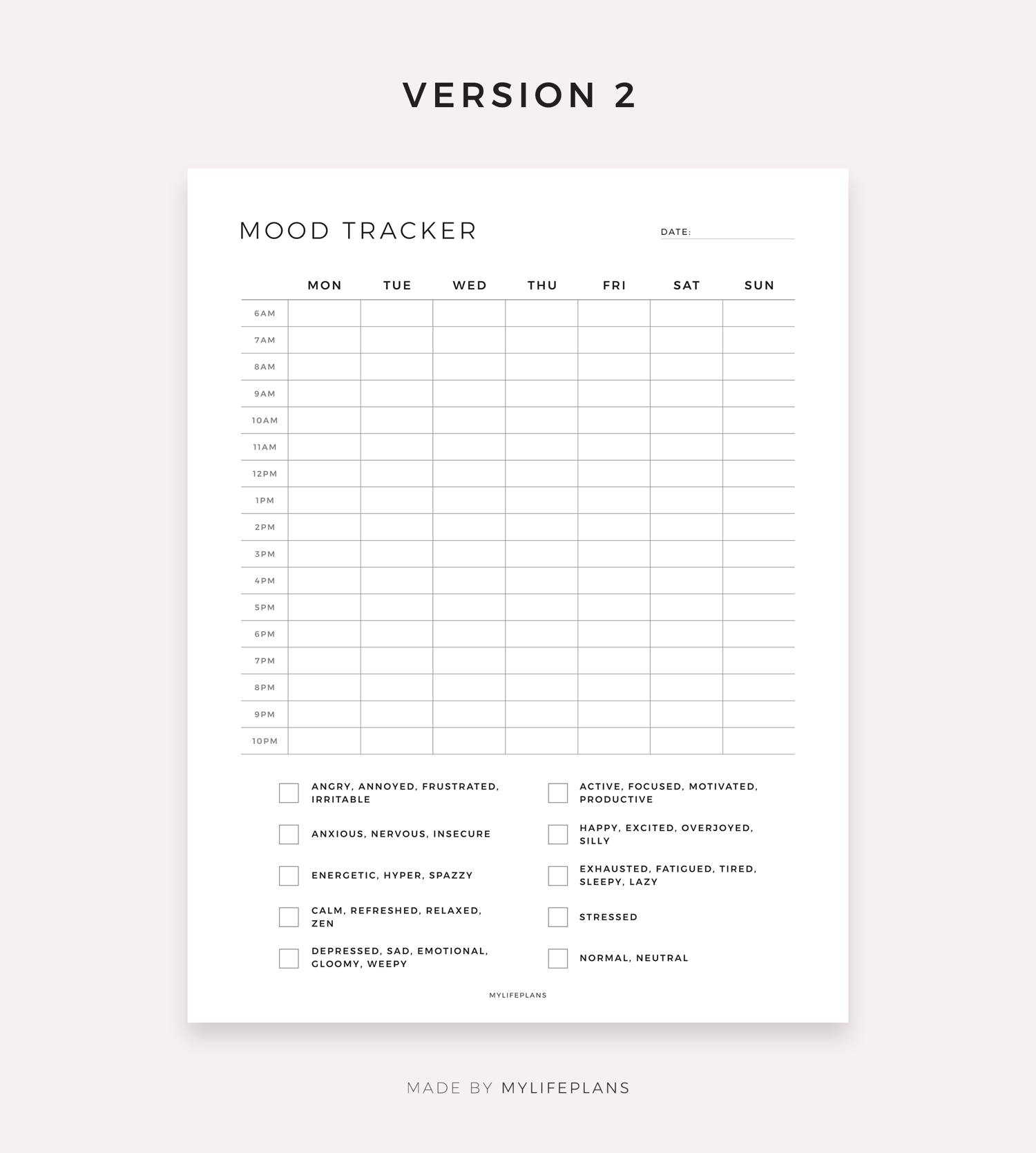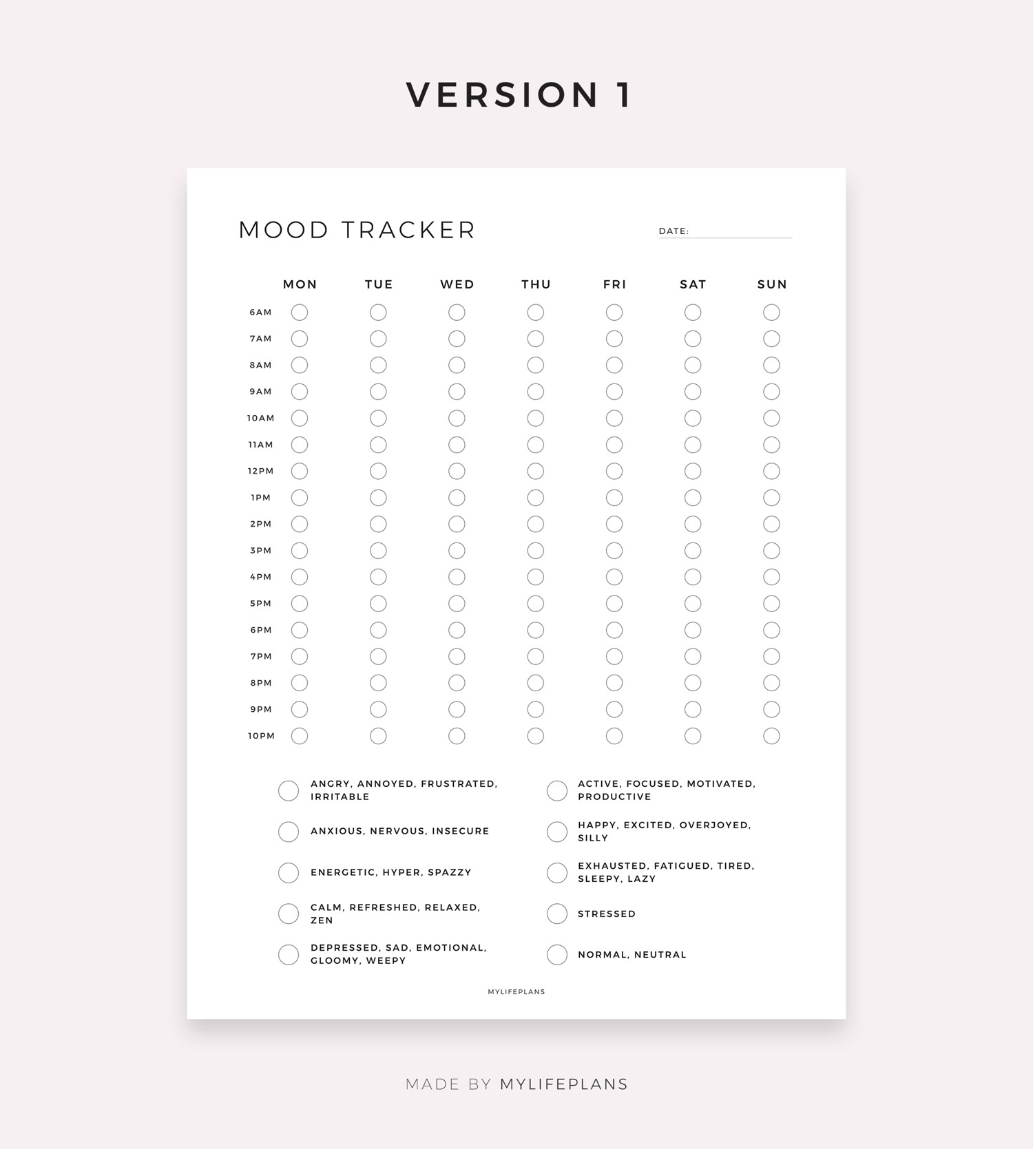 Hourly Mood Tracker, Digital Template for Goodnotes, Notability, Ipad