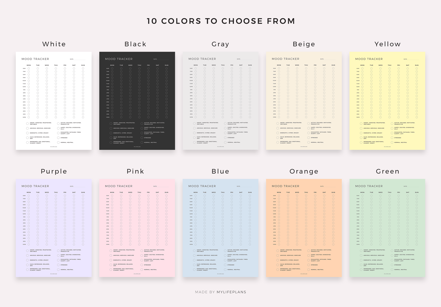 • 10 color options: White, Gray, Black, Beige, Yellow, Purple, Pink, Blue, Orange, Green