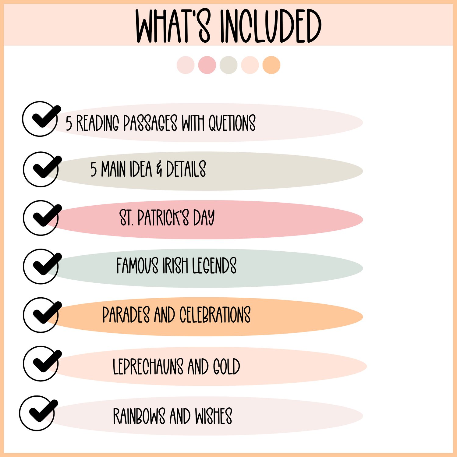 St Patricks Day Reading Comprehension Passages with Main Idea & Supporting Details