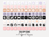 • Icons are made with the 'Shortcuts' app on your device. It is a default app on iOS devices. Please note that each icon shortcut has to be created one by one which can be time-consuming if you have a lot of apps on your Home Screen. The icon set includes a user guide to the Shortcuts app.