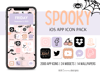 Add a touch of whimsy to your device using this Spooky iOS App Icon pack in soft pastel colours, designed to capture the essence of Halloween. These app icons offer a delightful blend of spooky and sweet, ensuring that all your favorite applications can be seamlessly transformed into pastel-coloured Halloween treats.