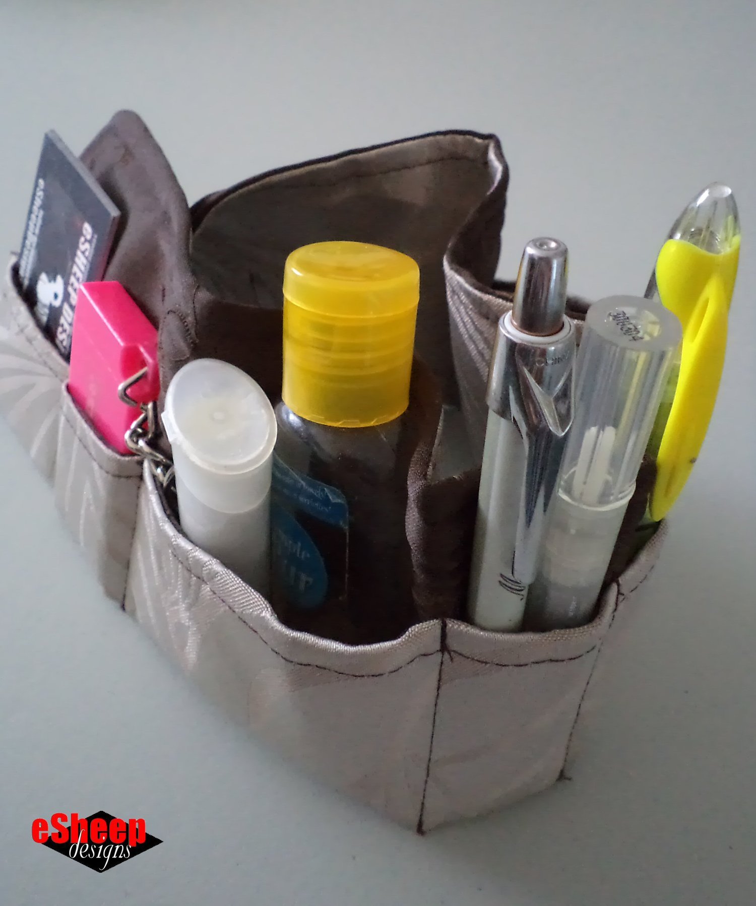 This was the first tutorial that I offered on my blog and it was a runaway success. After all, who can't use some extra organization in their bags and purses to make transferring between them effortless? This little item will store your small bits and pieces in custom sized pockets of varying heights, due to the "wave" that's built into the design.