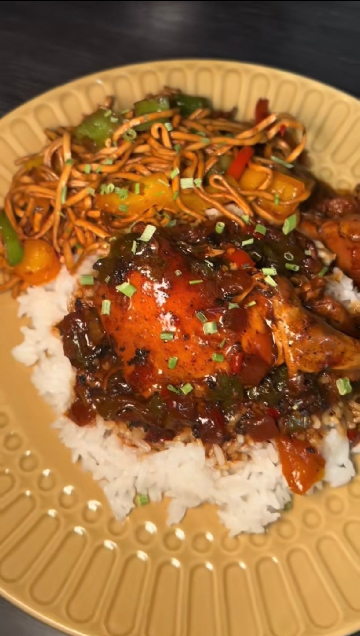 This Sweet Chilli Chicken is all about juicy, golden-brown chicken coated in a rich, glossy sauce that perfectly balances sweet, spicy, and savoury flavours. Infused with jerk seasoning, thyme, pimento, and finished with fresh peppers and a kick of Scotch bonnet, every bite is bold, sticky, and full of flavour.