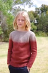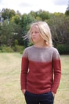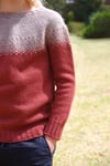 Vicariously is a seamless circular yoke sweater knit from the top down. The yoke is initially shaped with short rows before melding into a stitch pattern that sees the colour alter gradually. This is created through simple colourwork that is addictive and flies off the needles. After knitting the yoke, the garment is divided to knit the sleeves and body.