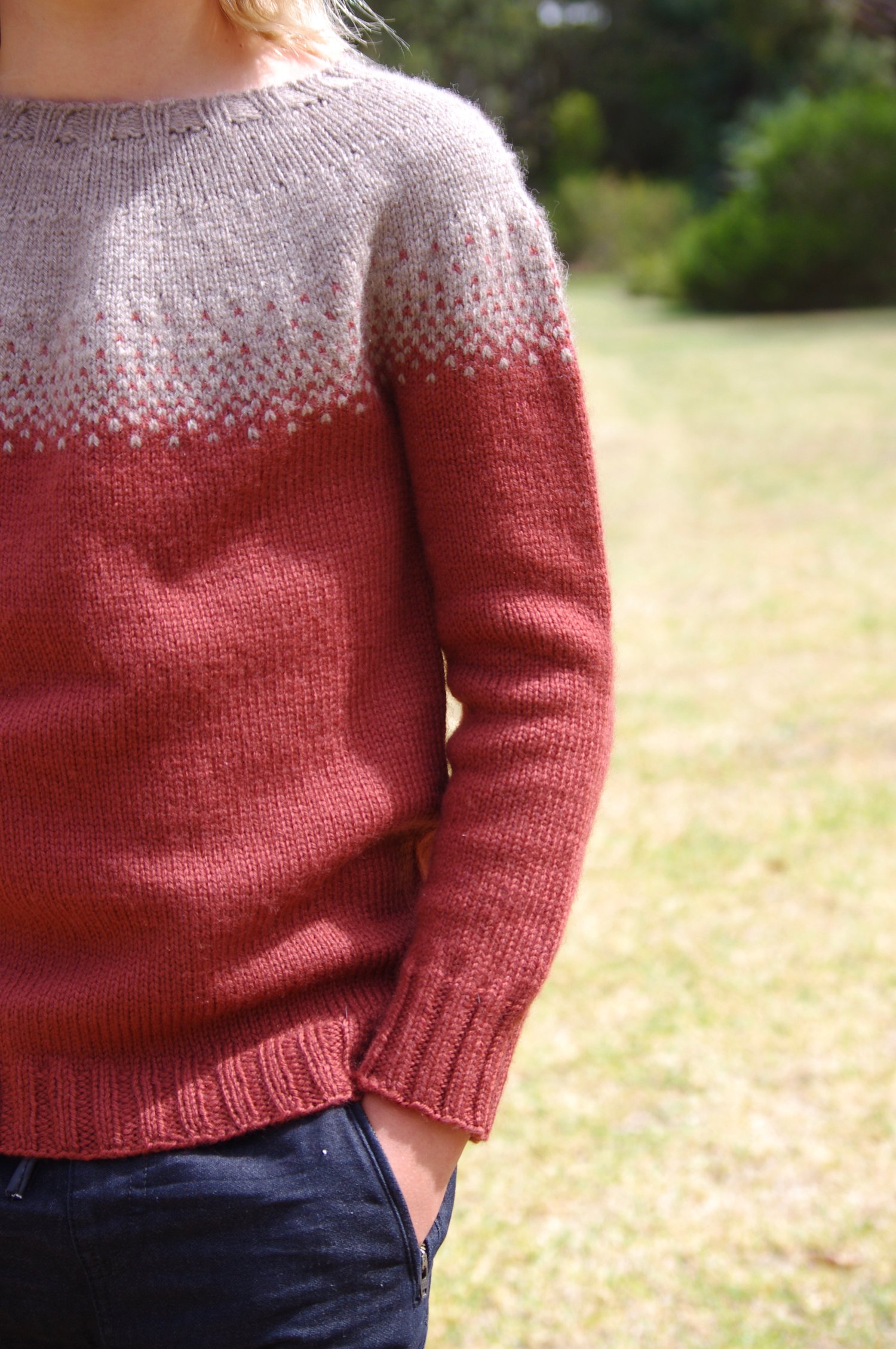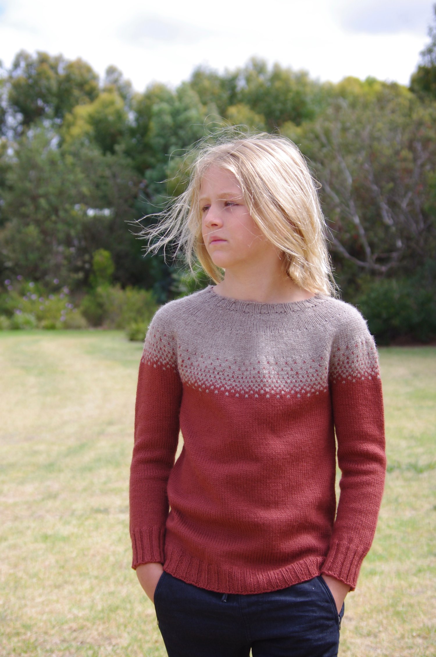 Vicariously was originally designed as a Christmas sweater for my son. Only thing is we live in Australia and Christmas Day is invariably ridiculously hot with not a chance of a sweater ever being worn. But why should he miss out on the joy of a Christmas sweater just because it’s too hot to actually wear it?