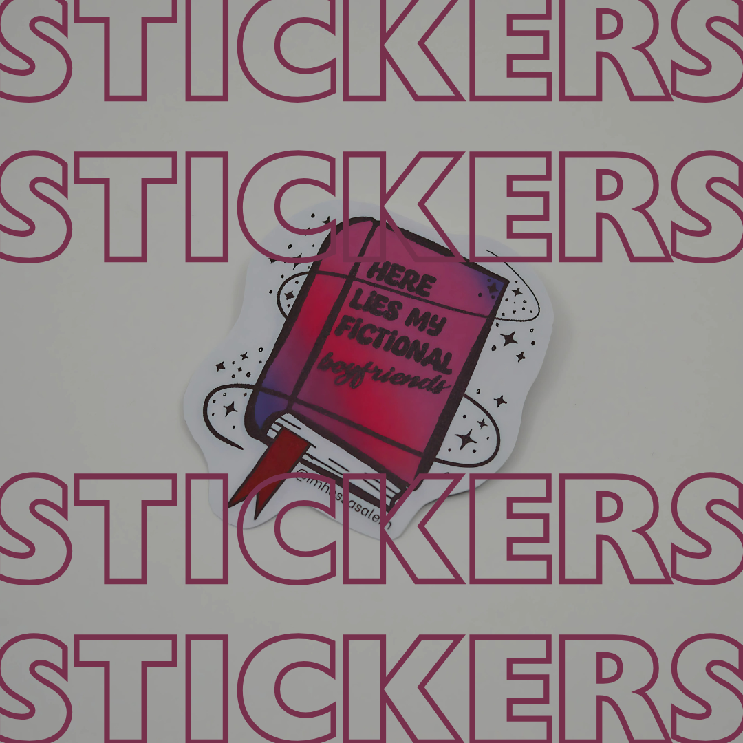 Pay tribute to your fictional crushes with the 'Here Lies My Fictional Boyfriends' sticker. A fun and witty way to show love for your favourite book, movie, or TV characters!