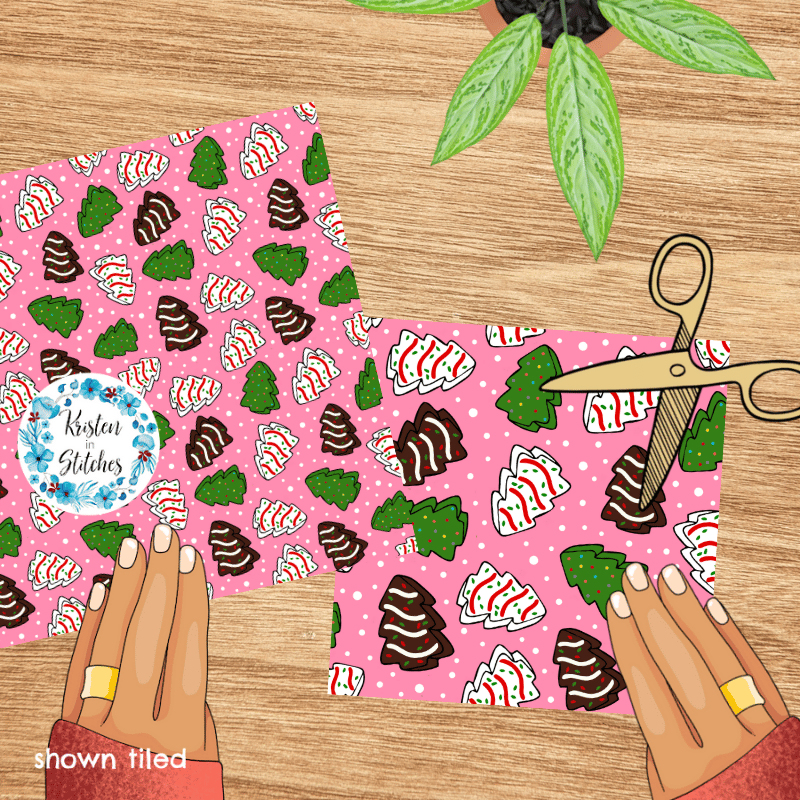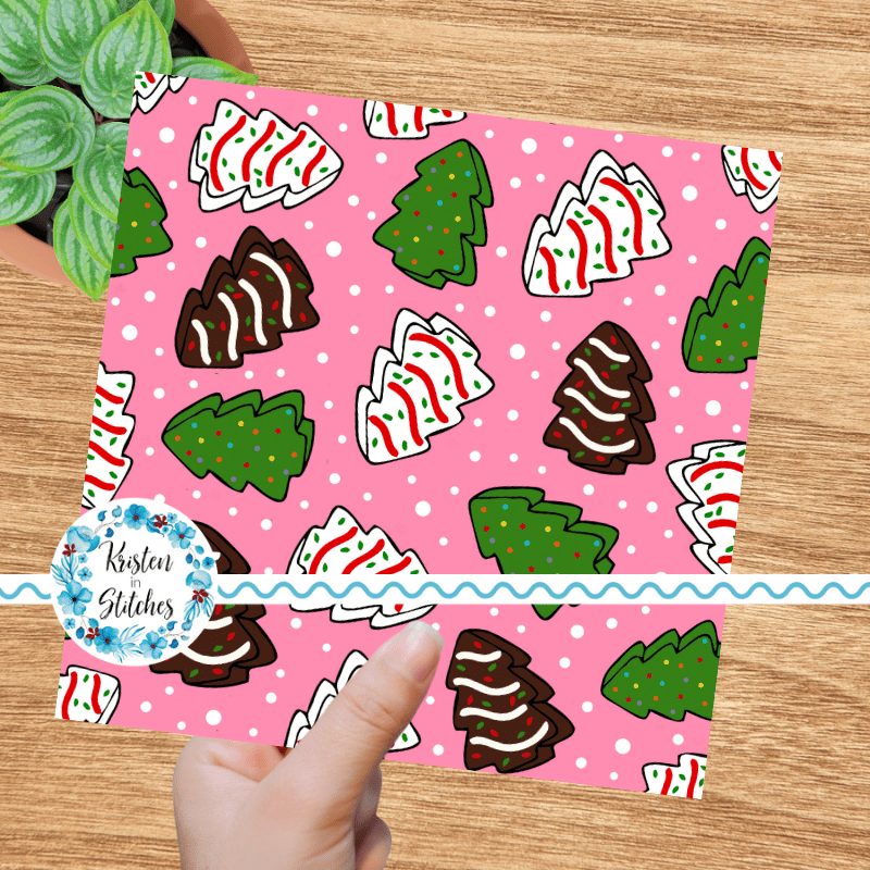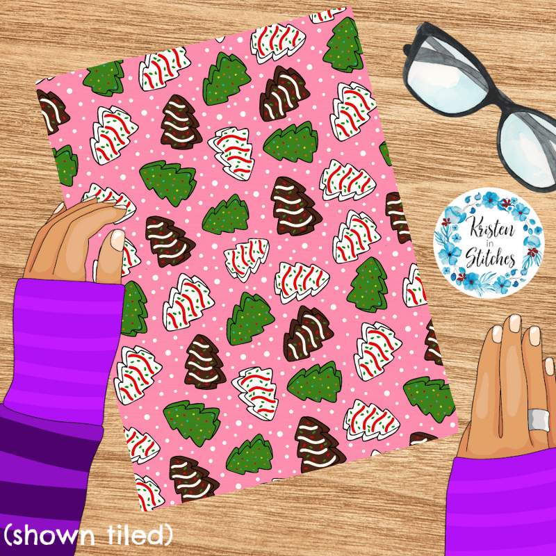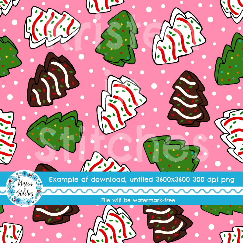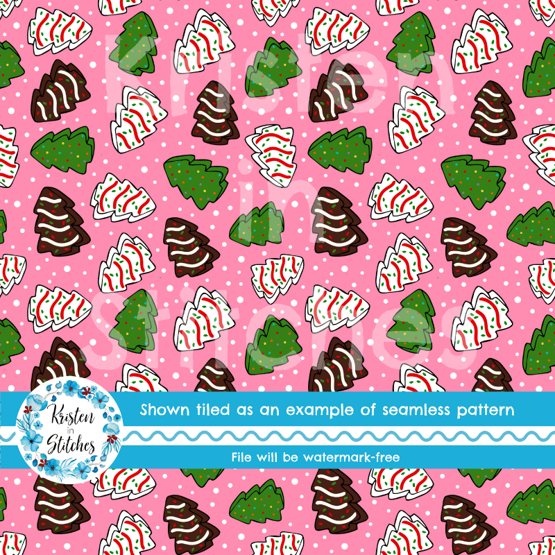 Christmas Tree Snack Cakes Little Debbie Cakes Seamless Pattern Pink