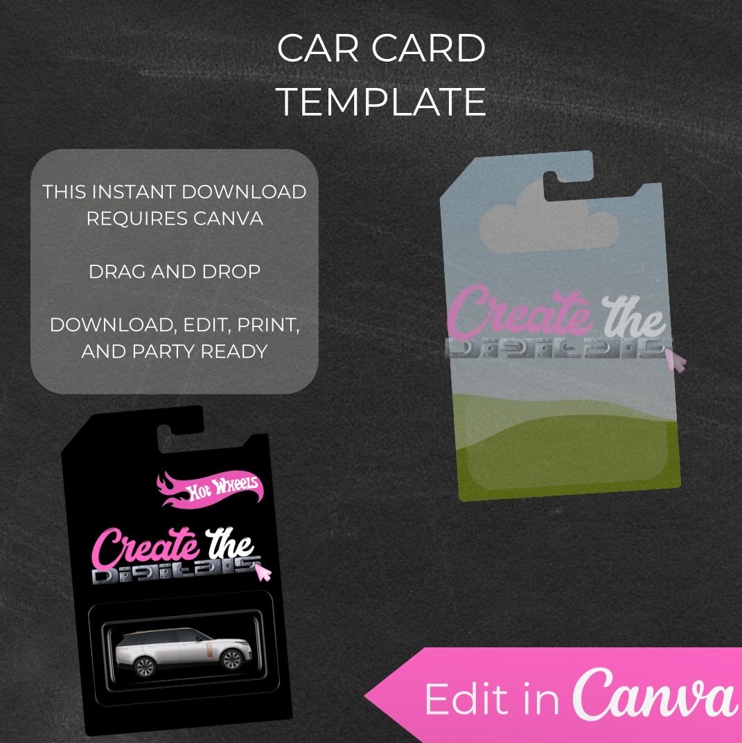 Rev up your party favors with this Toy Car Card Template inspired by that classic car brand style everyone loves. Perfect for party planners, boy moms, and creative sellers who want to add a custom, collectible-style touch to their toy car packaging. This editable Canva template makes it easy to design your own themed car cards for birthday parties, events, or small business sales.