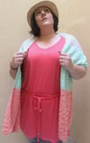 If you live in a warm climate as I do or would just benefit from a lightweight spring summer little wrap around against chilling air conditioning systems, this is a great add on to your transitional wardrobe. Knit this piece in light breathable summer style yarns, in shades warm weather draws you towards so it’ll blend in easily with your style, for a soft drapey piece that will take you from season to season. You can also opt for single color and choose your most loved warm weather shade.