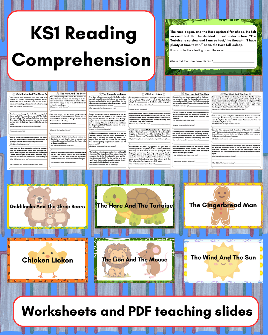 This downloadable pack includes high‑quality worksheets, traditional tale comprehension texts, and a colourful PDF slideshow ideal for classroom display, whole class teaching or online lessons. Includes: