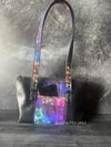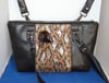 The bag can be made with three panels on each side or one panel. When using panels, you have the option of a center exterior pocket on each side. You may use one view on one side of the bag, and a second view on the other.