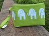 This is a sewing pattern bundle for a wristlet and a shoulder bag. The bundle includes a multi-page pattern file and an AO file for one page printing or projector use.