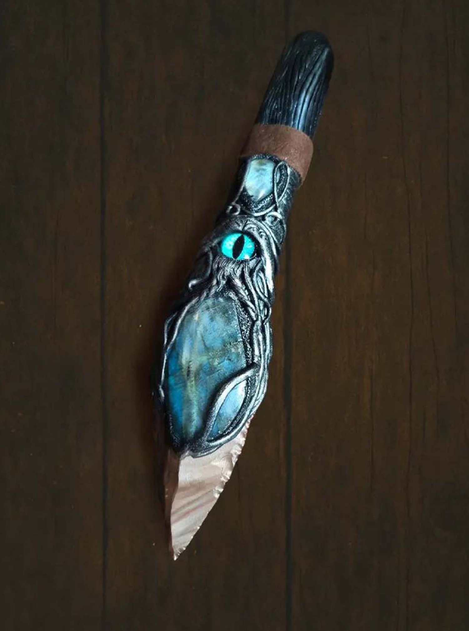 Each ritual knife is carefully handmade with intention, combining natural stones and crystals such as agate or obsidian arrowheads with sculpted polymer clay.
