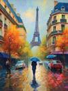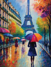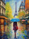 5 wall art,Paris city, rain falling, autumn season, passersby, rain umbrellas.eiffel tower paris and autumn paris and rain paris poster travel poster paris beauty,