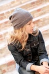 Knit up using one skein of June Cashmere lace, this stylish hat is worked in the round from brim to crown. A turned hem adds stability to the brim while short-rows enhance the slouch, giving a light, warm, incredibly soft hat that fits in your pocket.