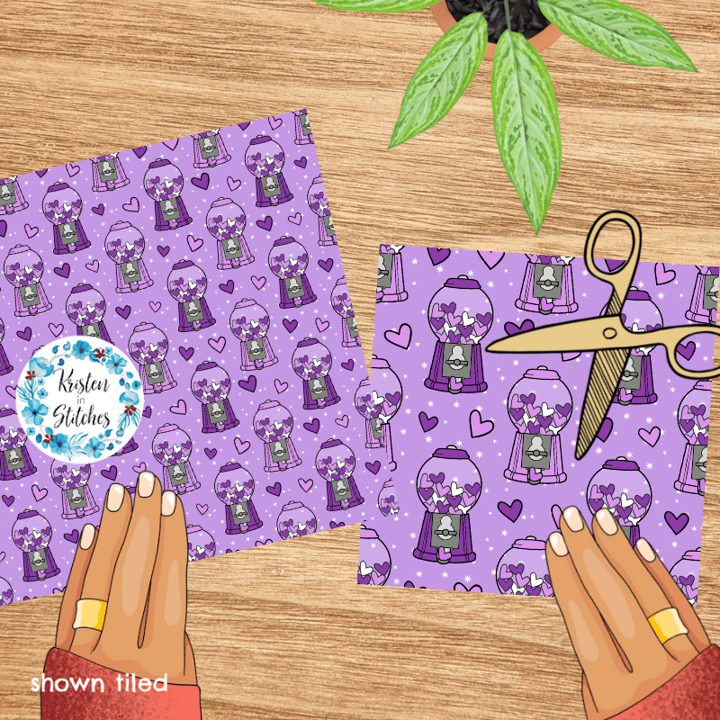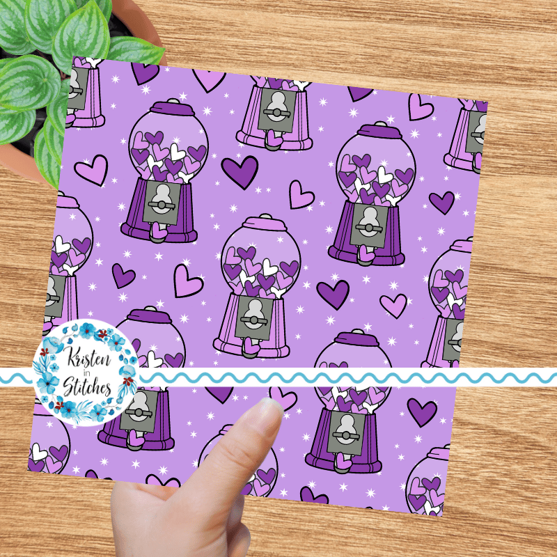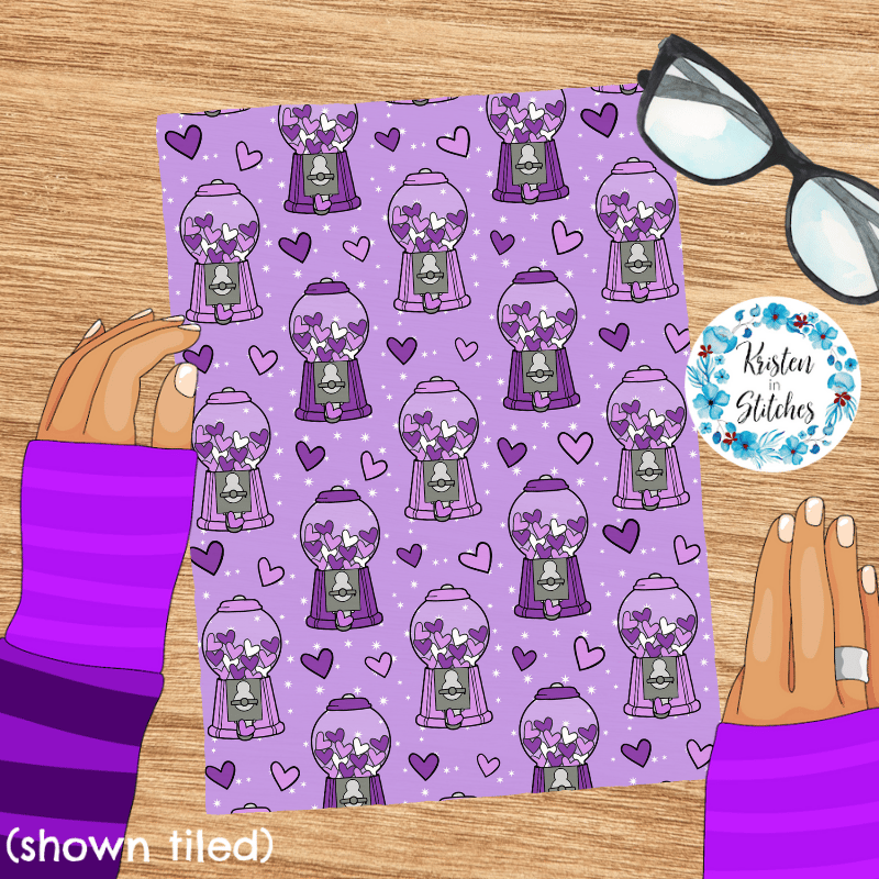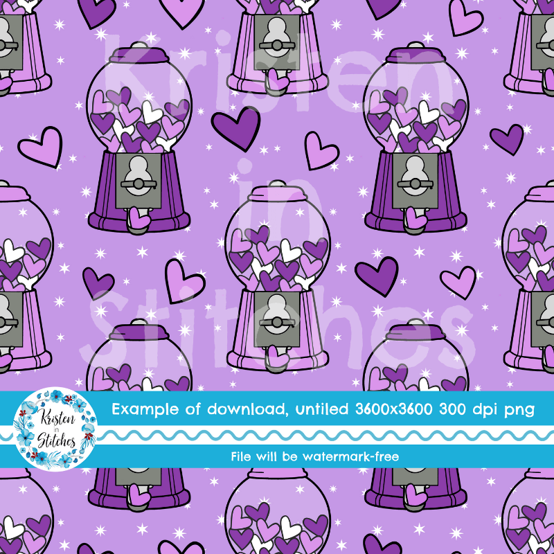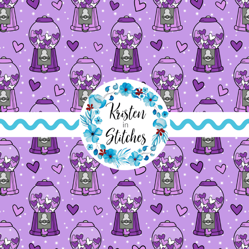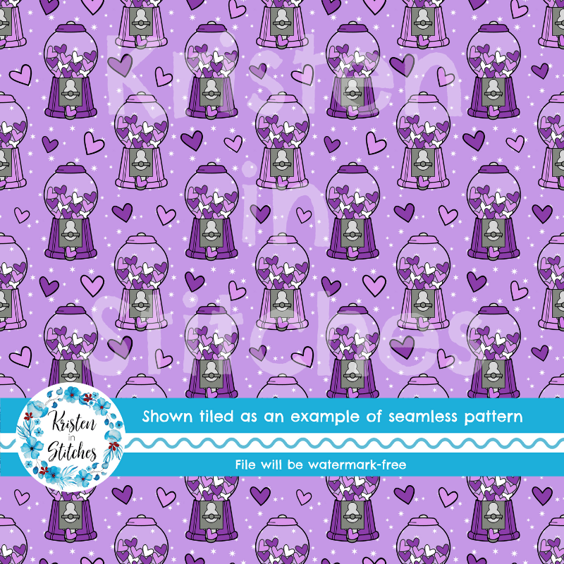 Valentine Hearts Bubblegum Machines Seamless Pattern, Purple