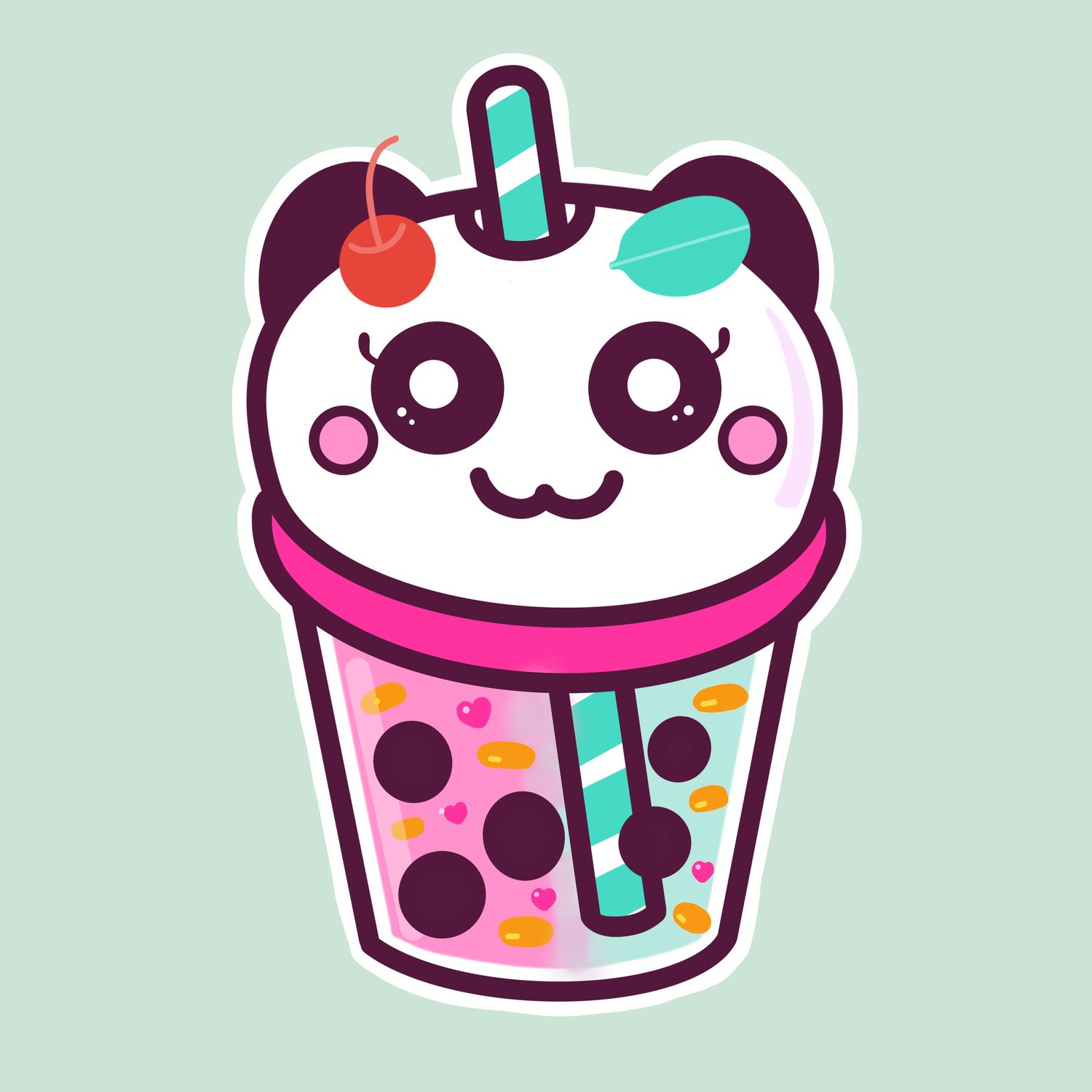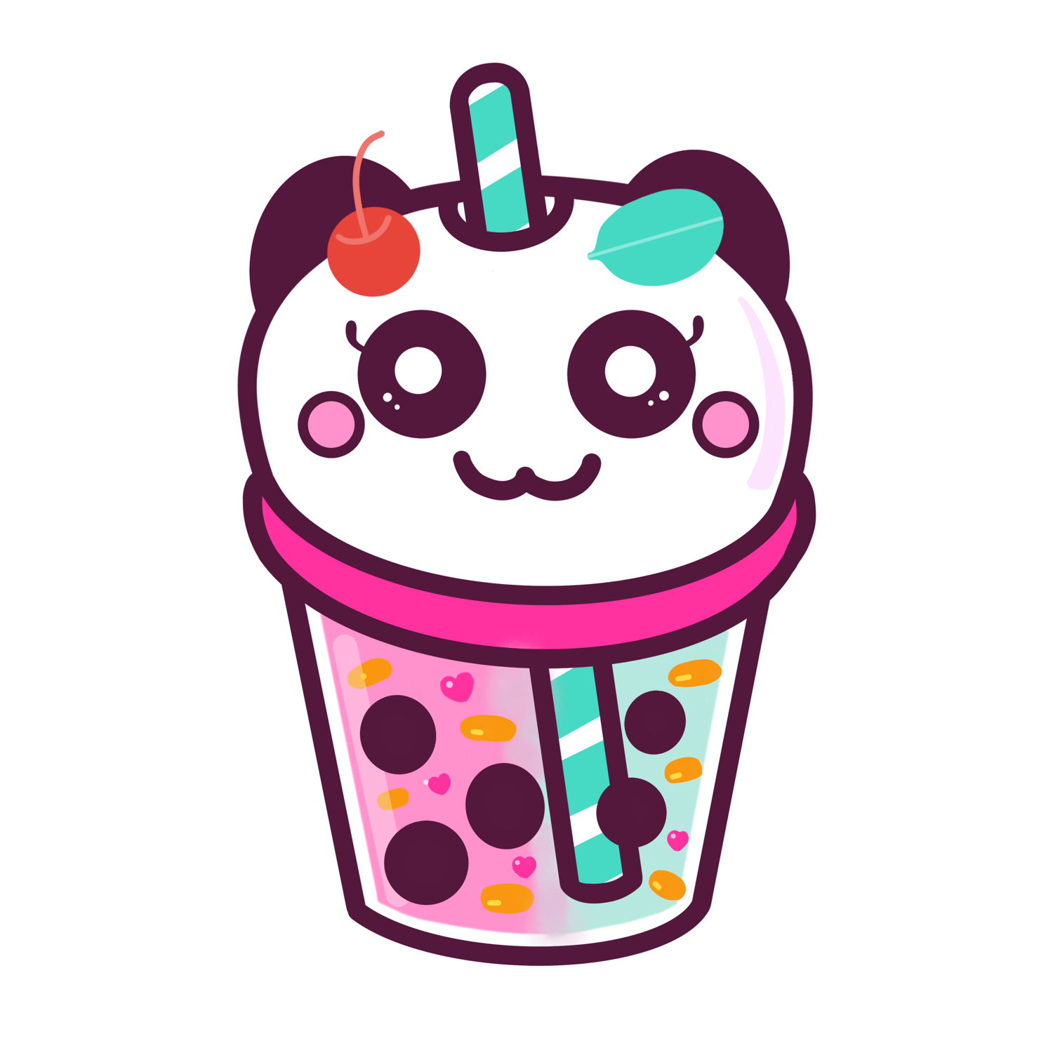 Panda Strawberry & Mint Boba Tea (JPG + PNG)
