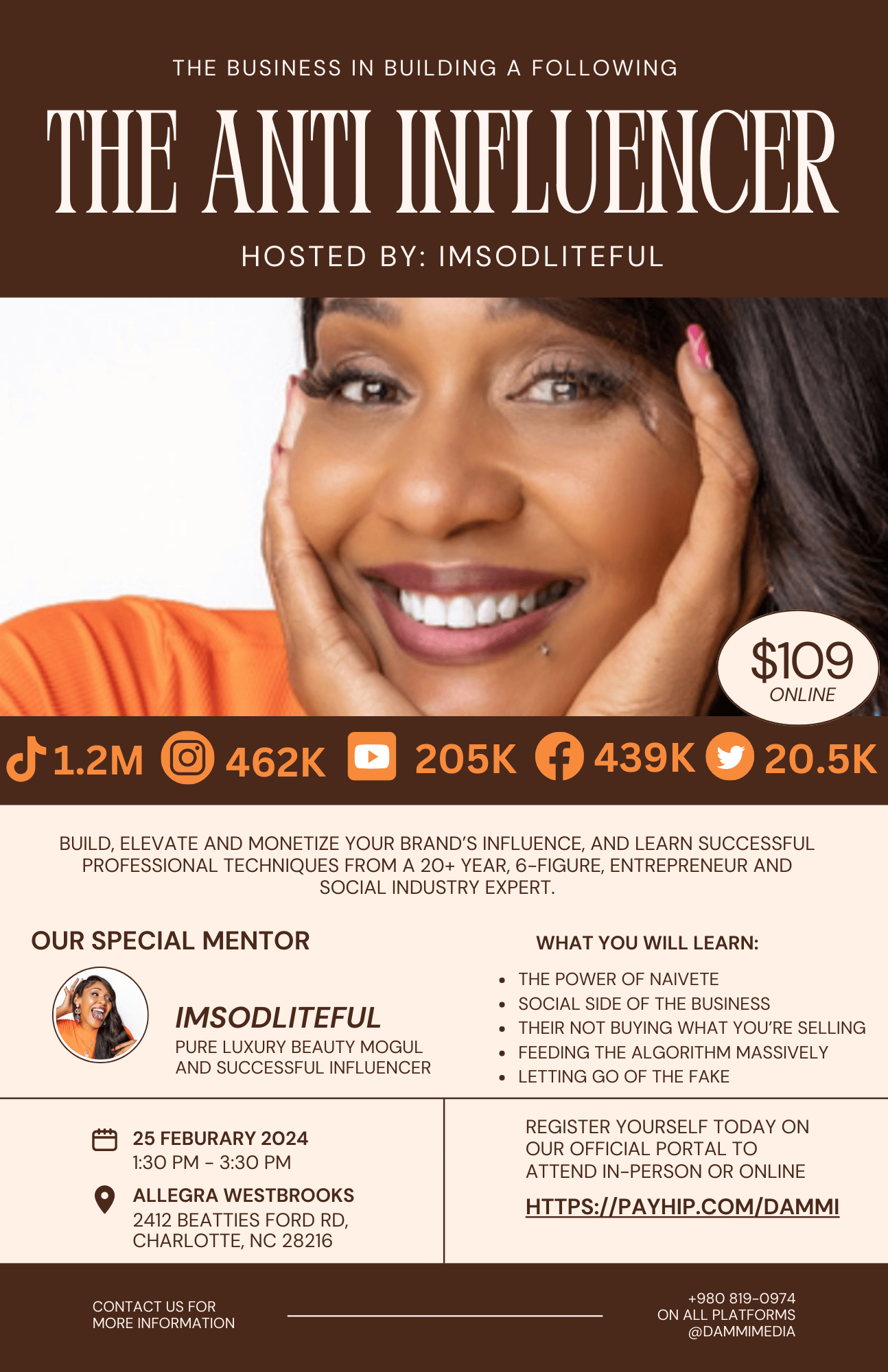In our two-hour course, "The Anti-Influencer," hosted by Katina Foster, a seasoned entrepreneur and social media influencer with over 2 million followers, you'll explore the intricacies of building an authentic brand in the digital age.