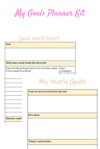 Goal Worksheet – helps you work through the goal, the mini tasks needed to achieve it, and decide what you need in order to achieve the goal.
