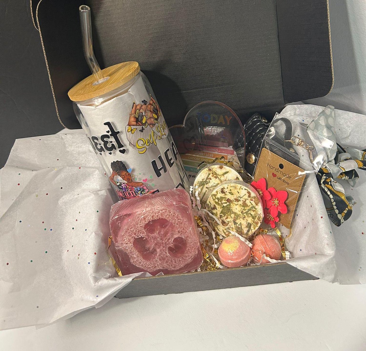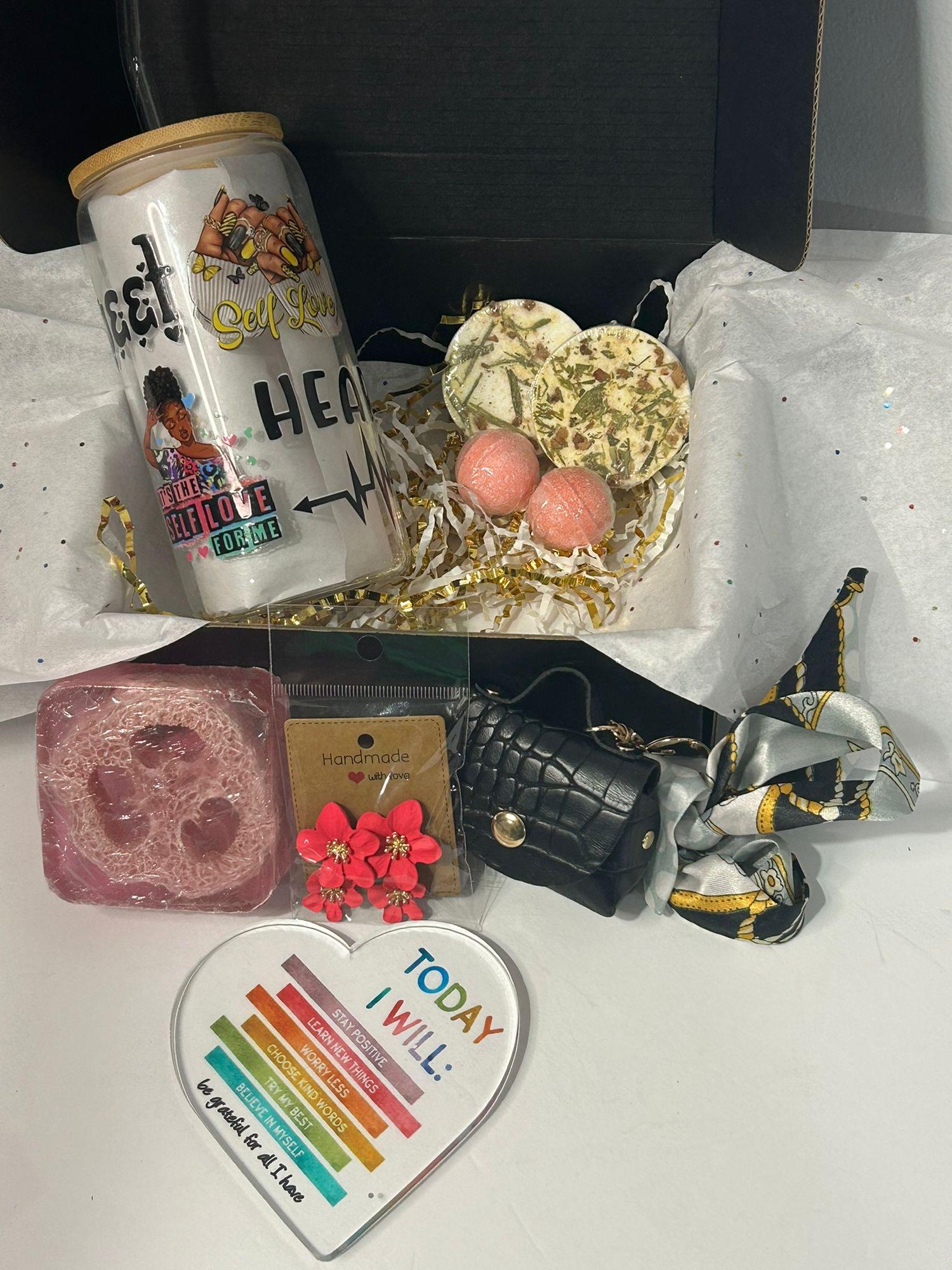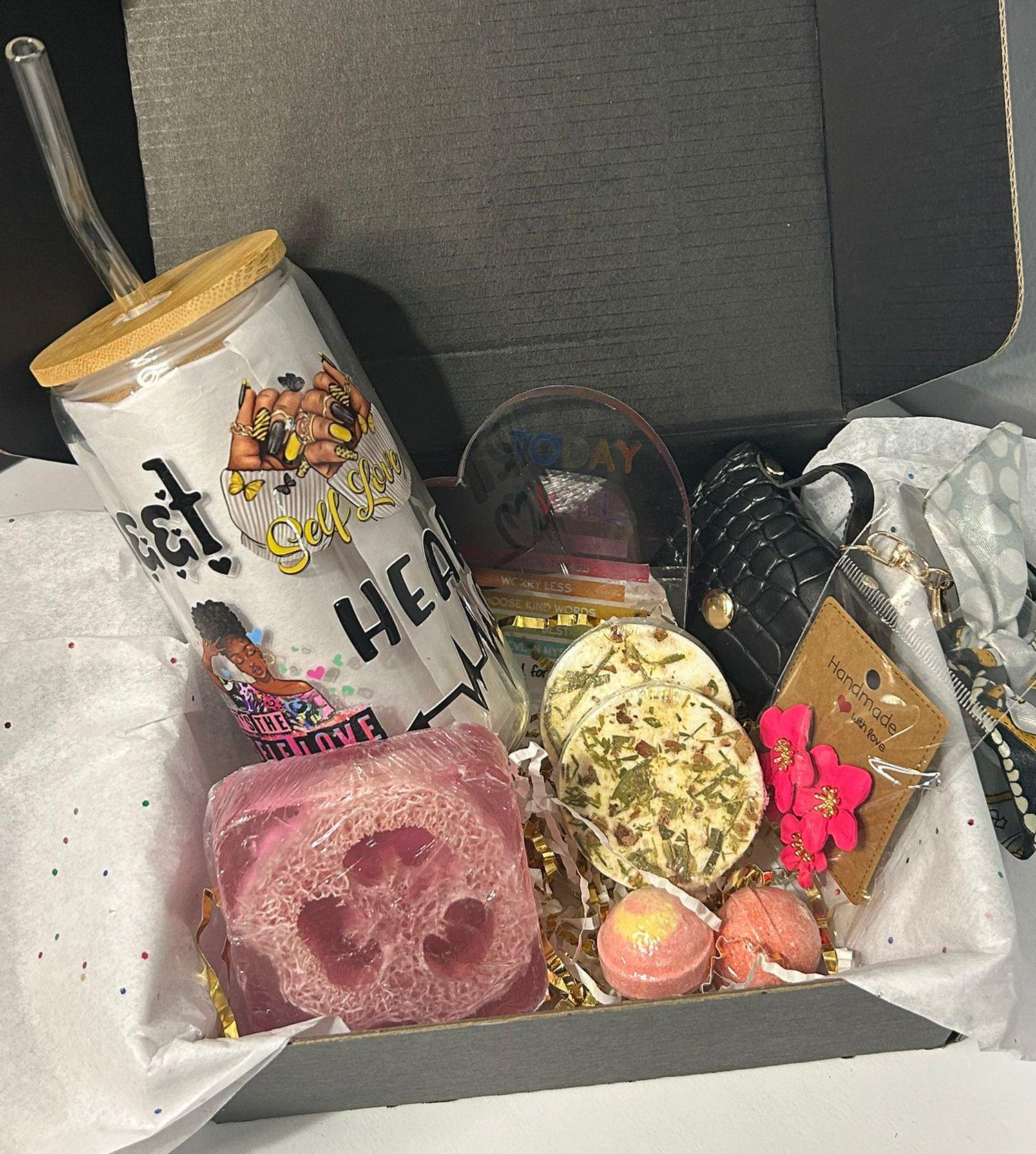 Embrace the beauty of self-care, confidence, and joy with the Self-Love & Serenity Gift Box! Thoughtfully curated to inspire relaxation and positivity, this uplifting gift set is the perfect treat for yourself or a loved one. Whether for a birthday, a thoughtful "just because" gift, or a self-care ritual, this collection is designed to celebrate inner strength and well-being.