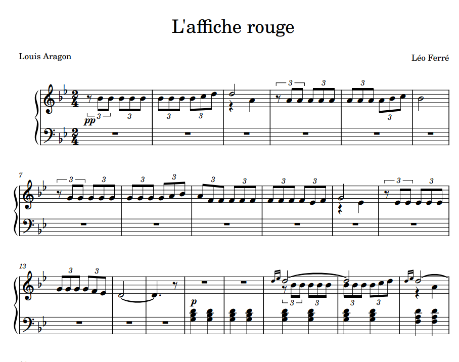 L'Affiche Rouge (Ferré/Aragon/Feu! Chatterton) - Partition Piano Solo